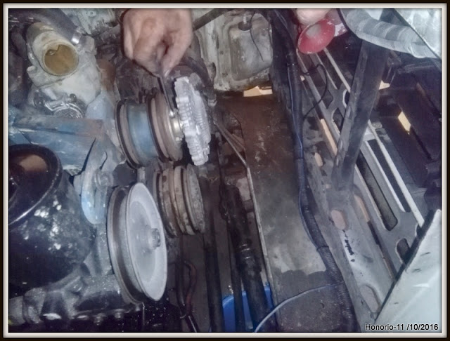Después de reparar los ejes de las gemelas, una bisagra del portón trasero, la cerradura también del portón, le toco la vez a el radiador, tenía una pequeña fuga de anticongelante. Aprovechando que se había soltado el radiador, se revisó el viscoso y la bomba de agua, aunque esta no perdía si que se observaba una pequeña oscilación en el eje.